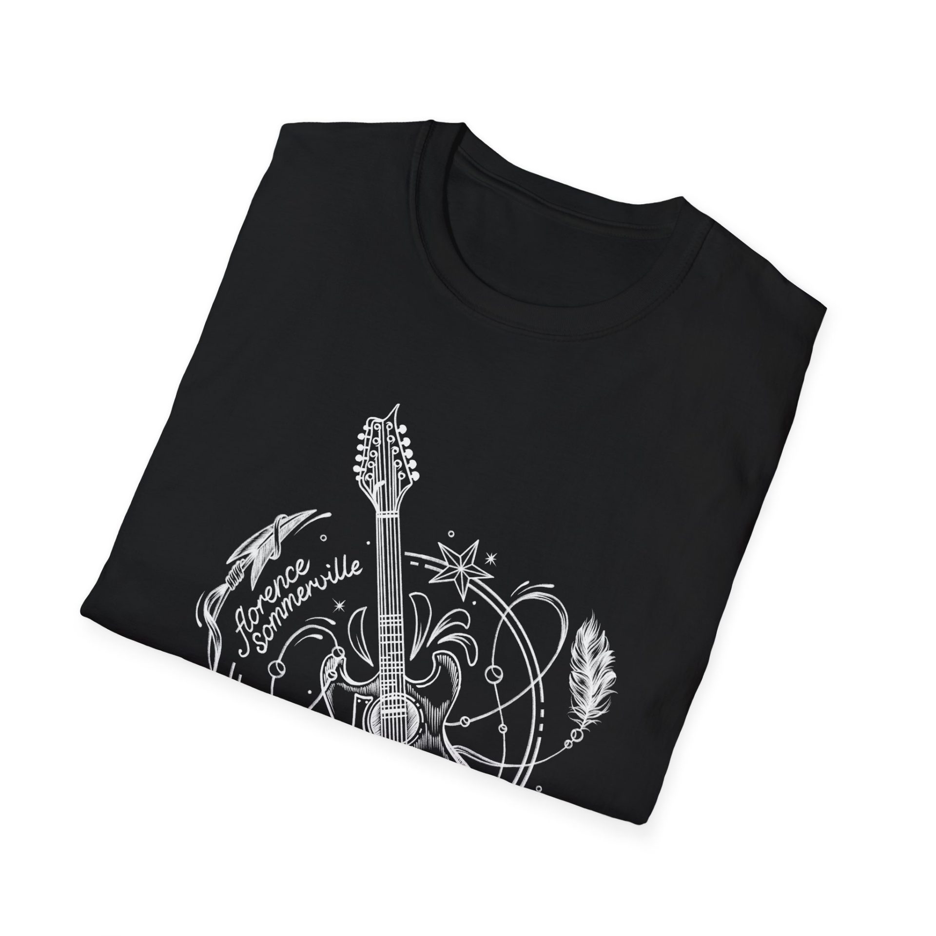 Official Florence Sommerville T-shirt – Vintage Guitar Design (white outline).
